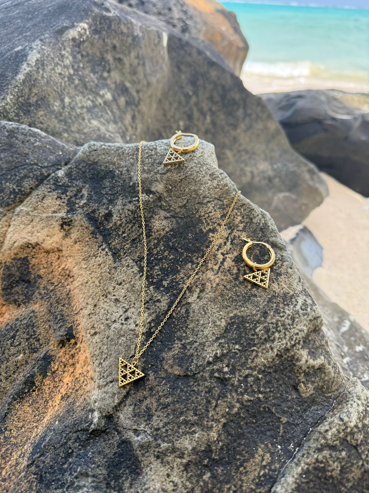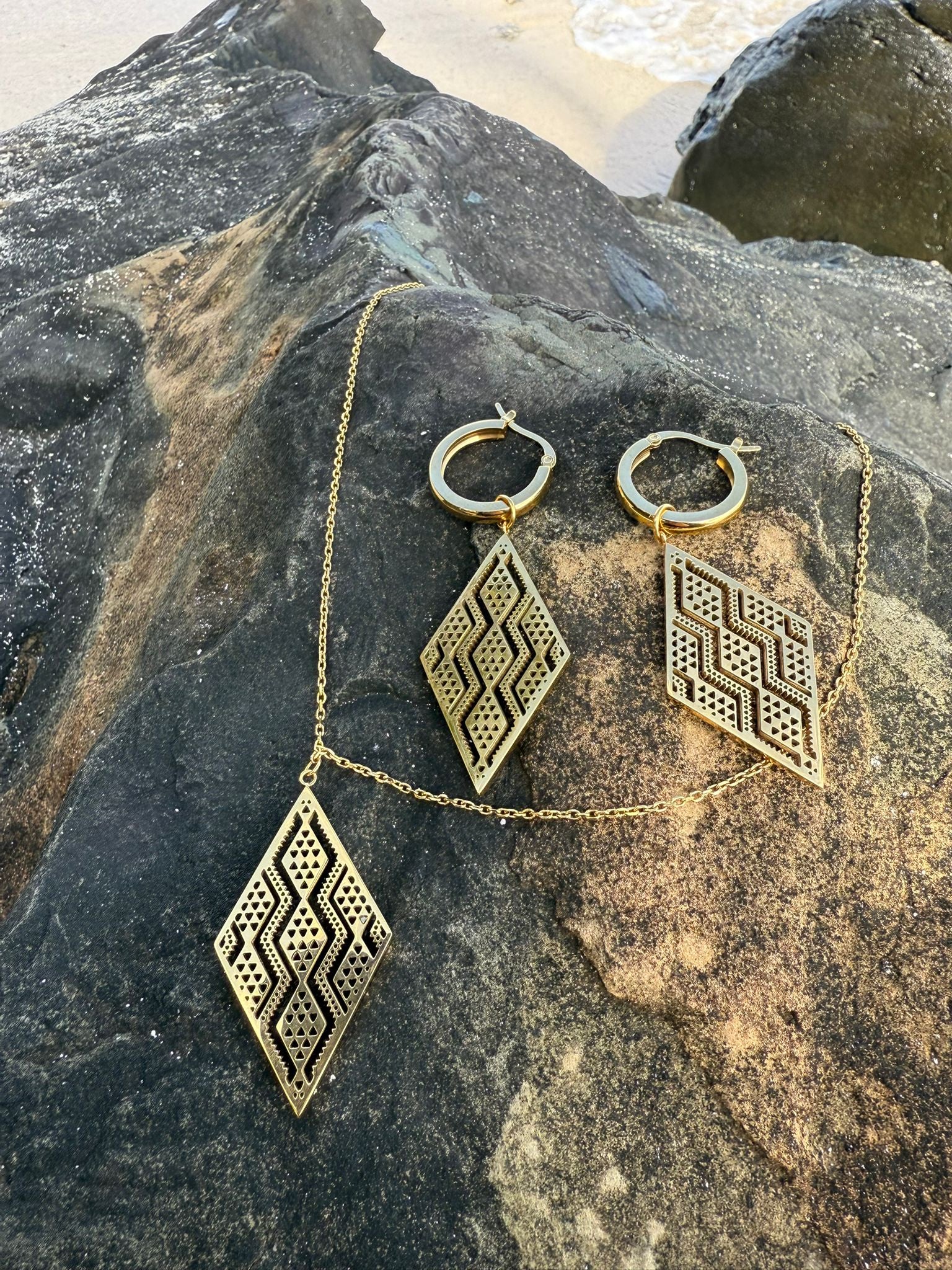 18ct Gold Plated Niho Earring and Pendant Set