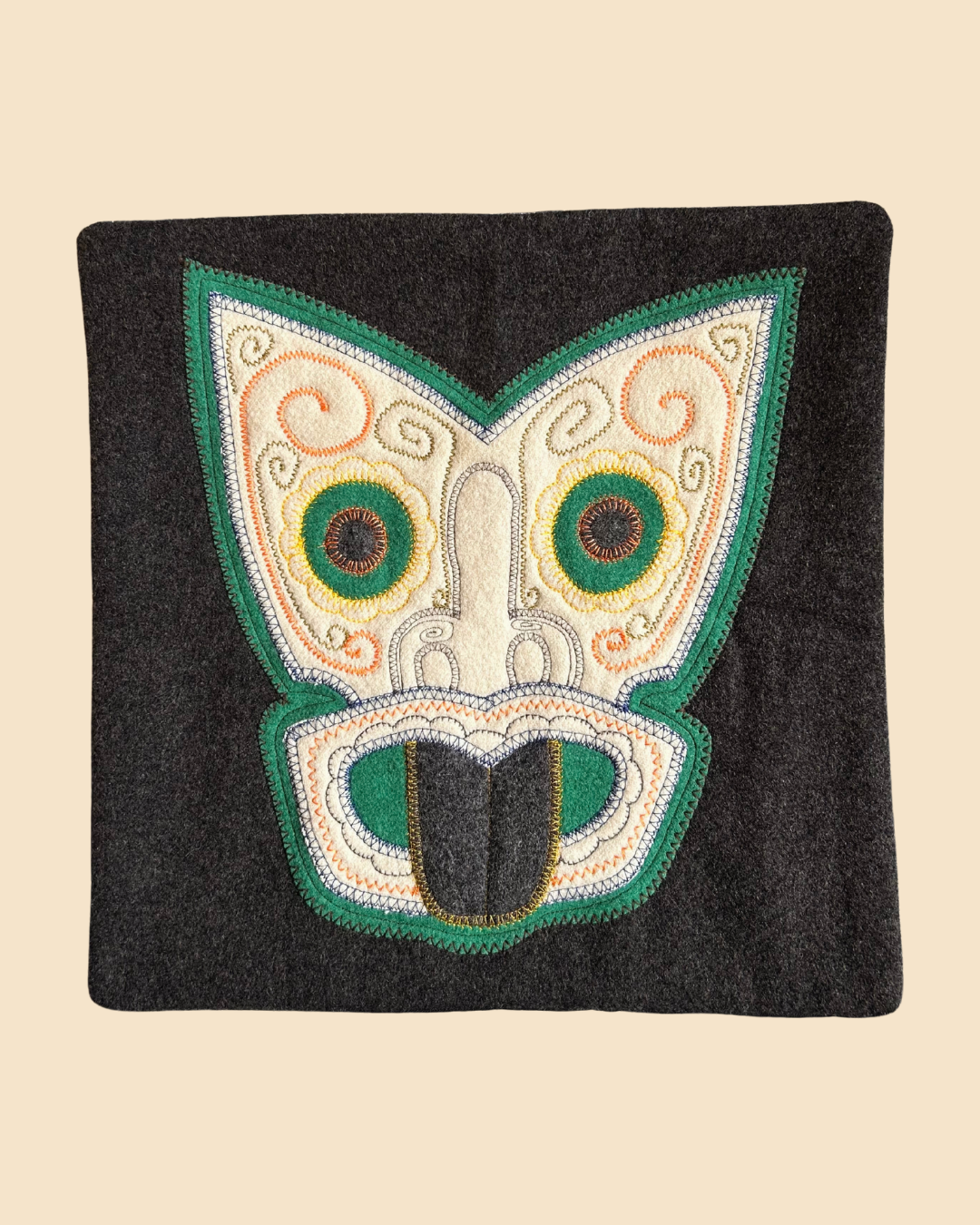 Tiki Cushion Cover - Dark Grey & Emerald