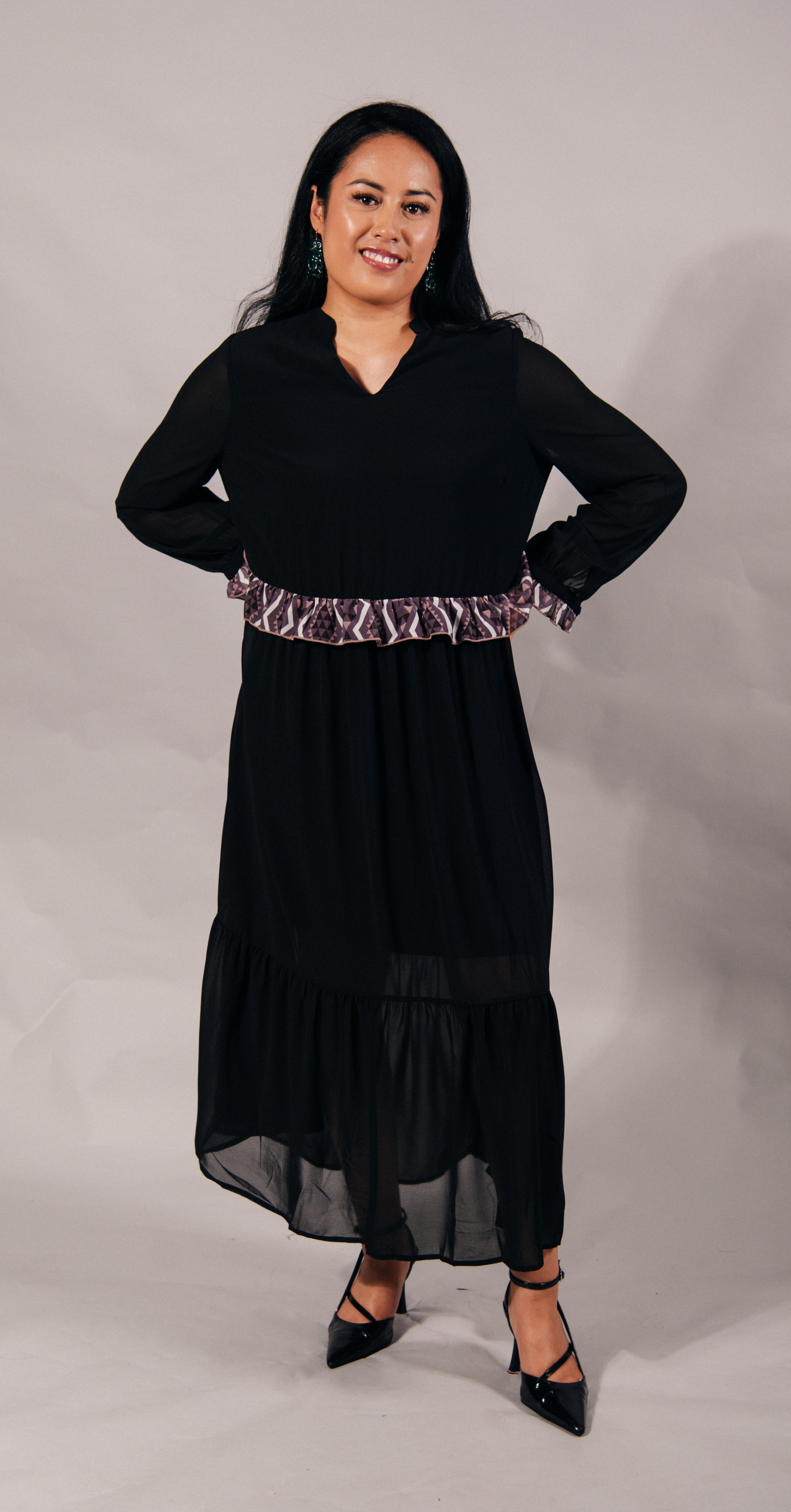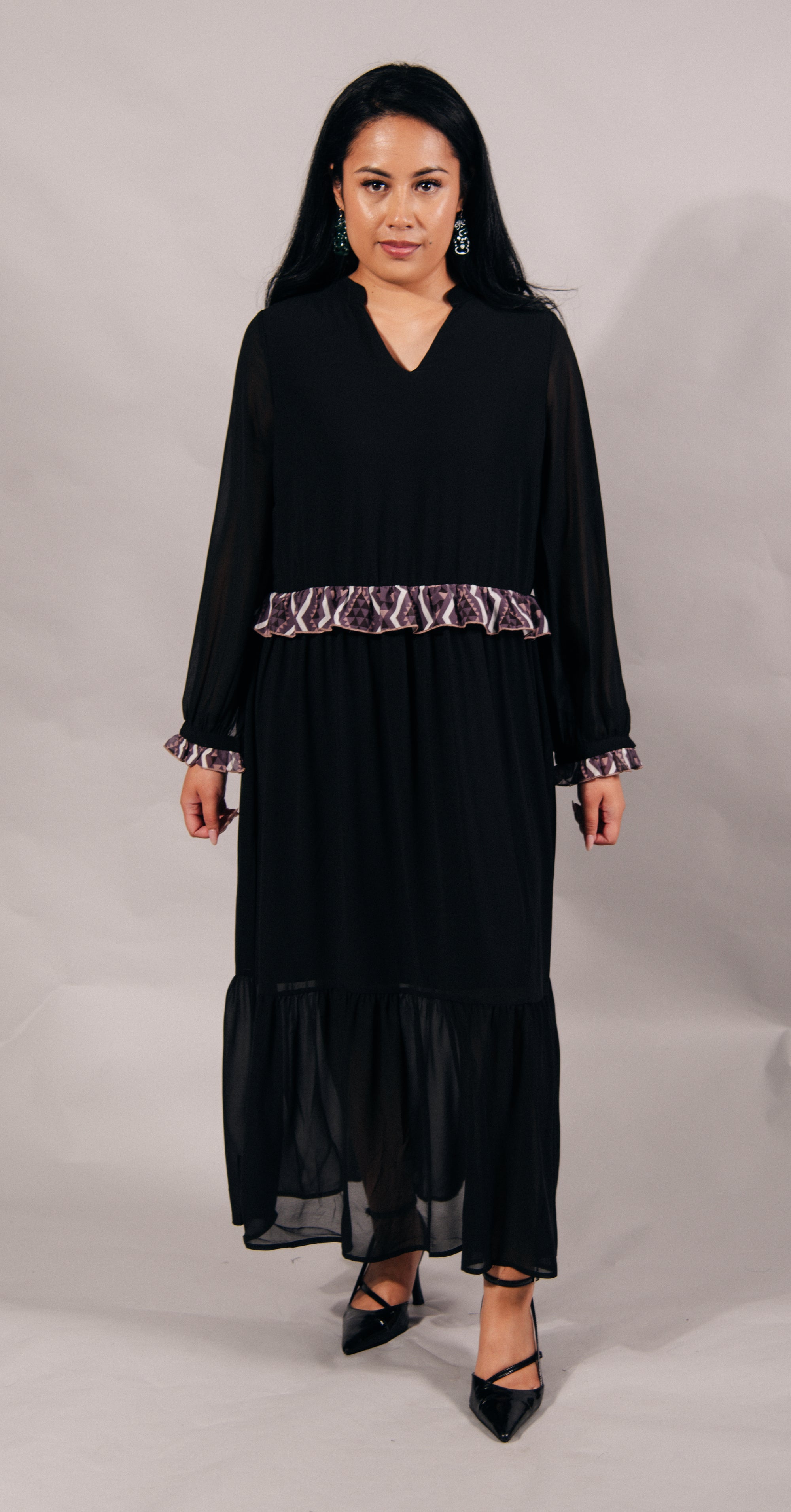 Rangitāmiro Embroidery With Aonui Frill Panekoti - Black