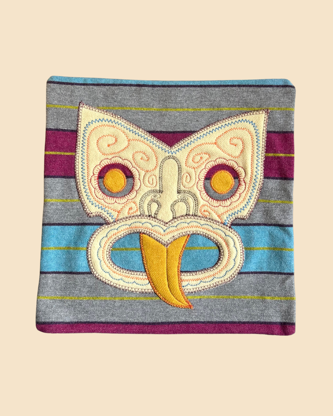 Tiki Cushion Cover - Grey, Purple Stripe