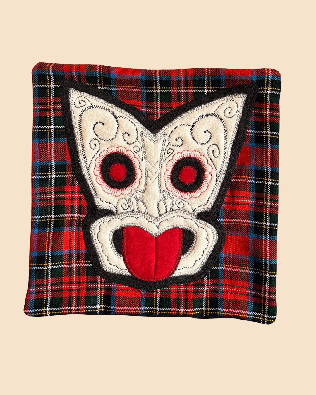 Tiki Cushion Cover - Black, Red Tartan