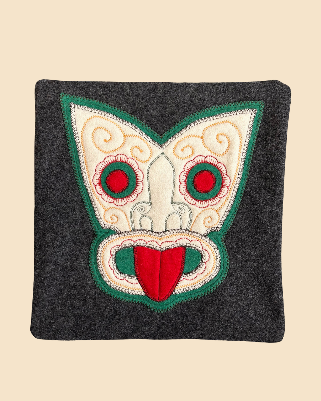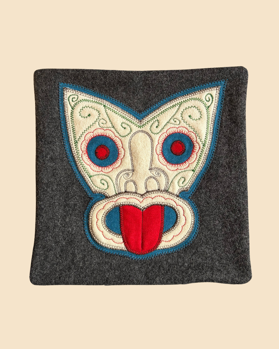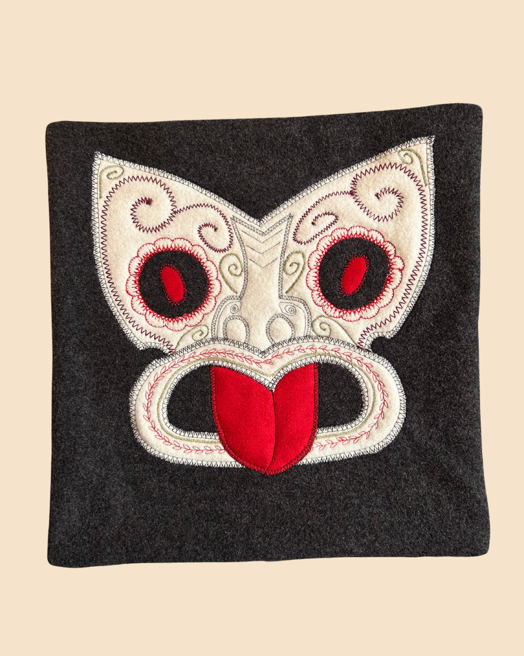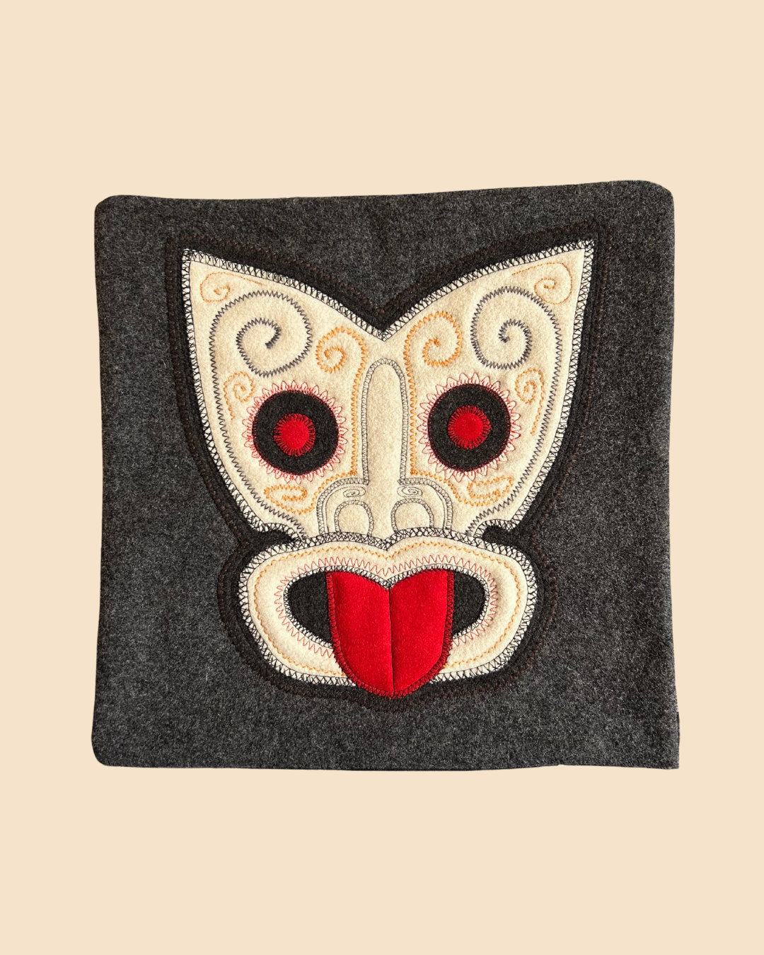 Tiki Cushion Cover - Dark Grey & Red