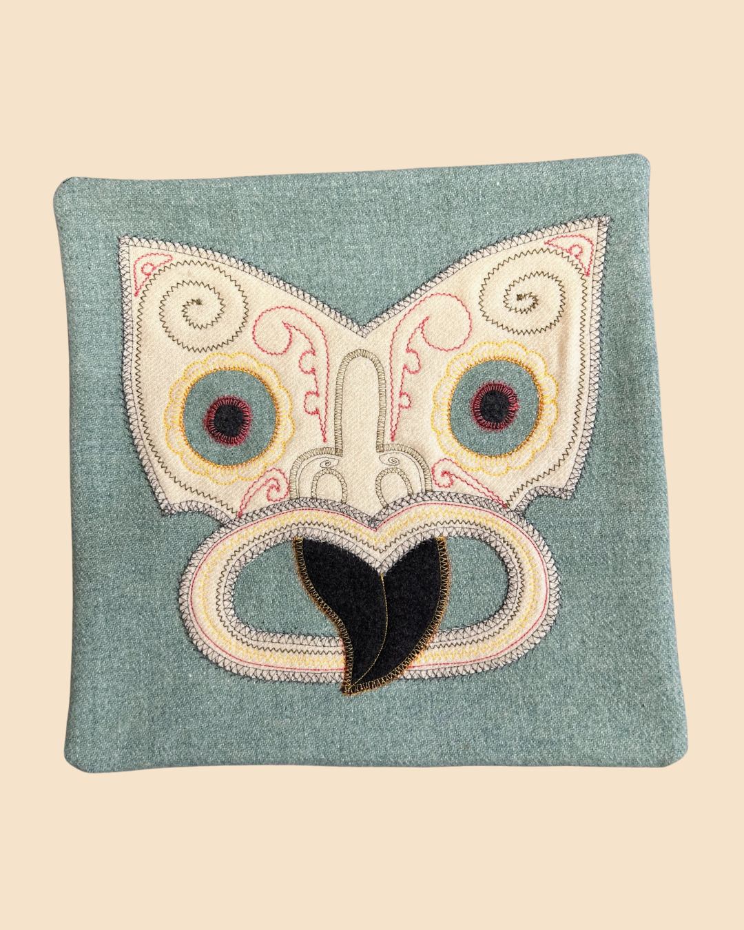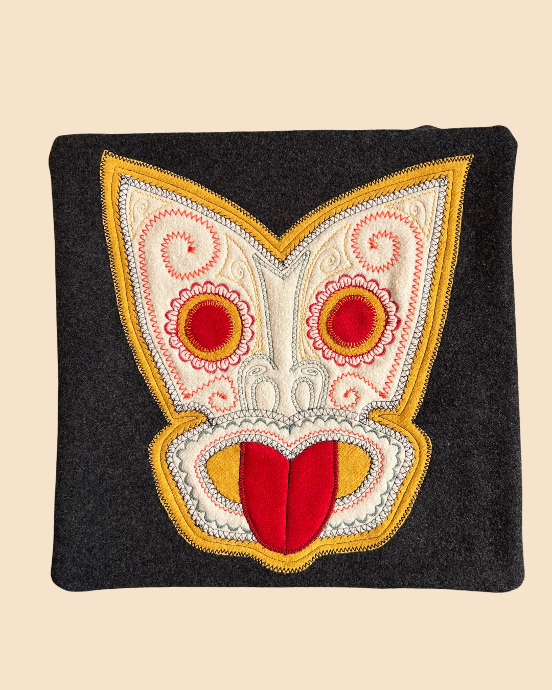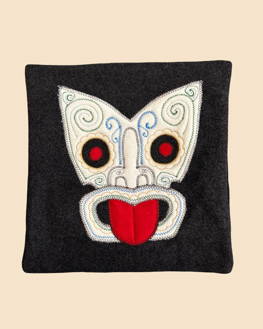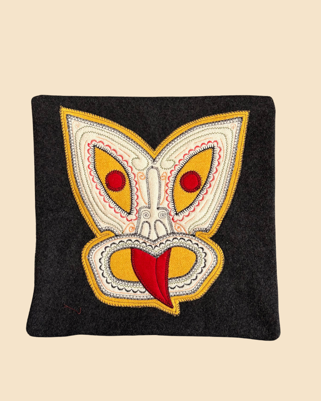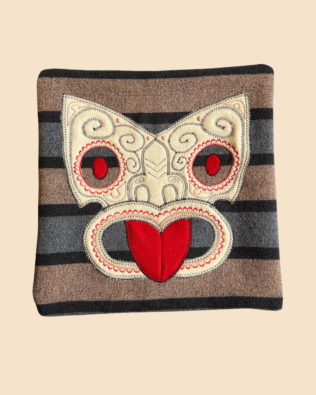 Tiki Cushion Cover - Black, Red & Cream