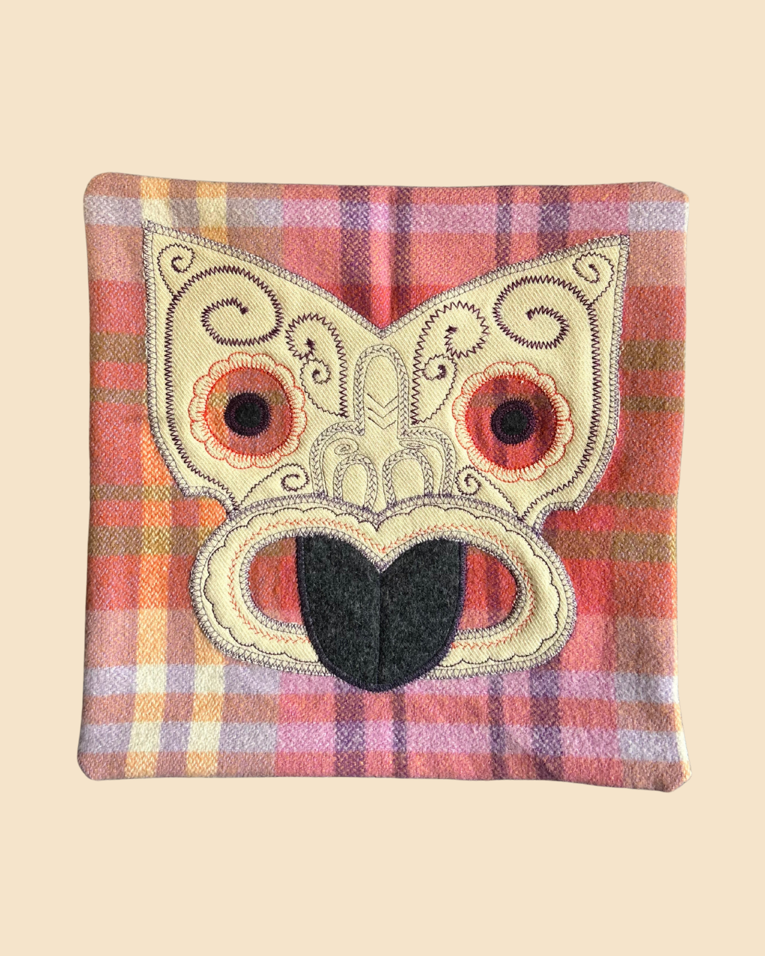 Tiki Cushion Cover - Pink & Peach Checkered